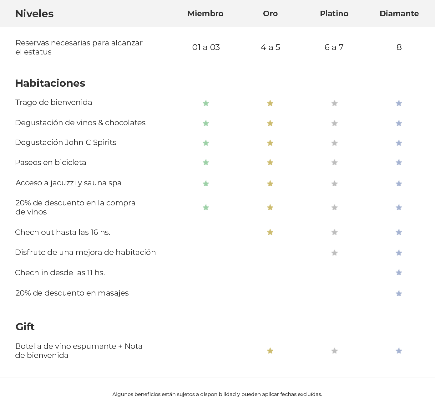 Algunos beneficios están sujetos a disponibilidad y pueden tener fechas excluidas (blackout dates). Recomendamos consultar siempre las condiciones antes de realizar una reserva o solicitar un canje.